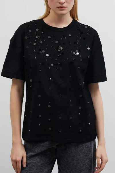 BSB T-shirt με Τύπωμα και Στρας Ανθρακί