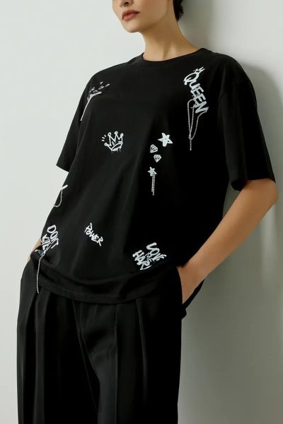 BSB Oversized T-shirt με Τύπωμα και Στρας