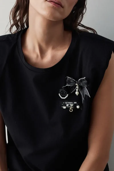 BSB Αμάνικη Mπλούζα με Aπλικέ Φιόγκο Μαύρο