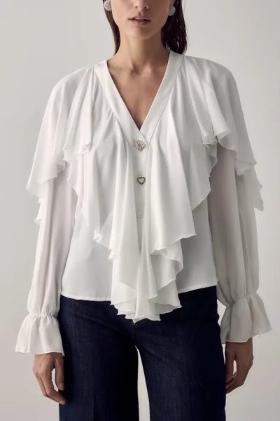 BSB Μπλούζα με Bολάν και Kουμπιά Off White