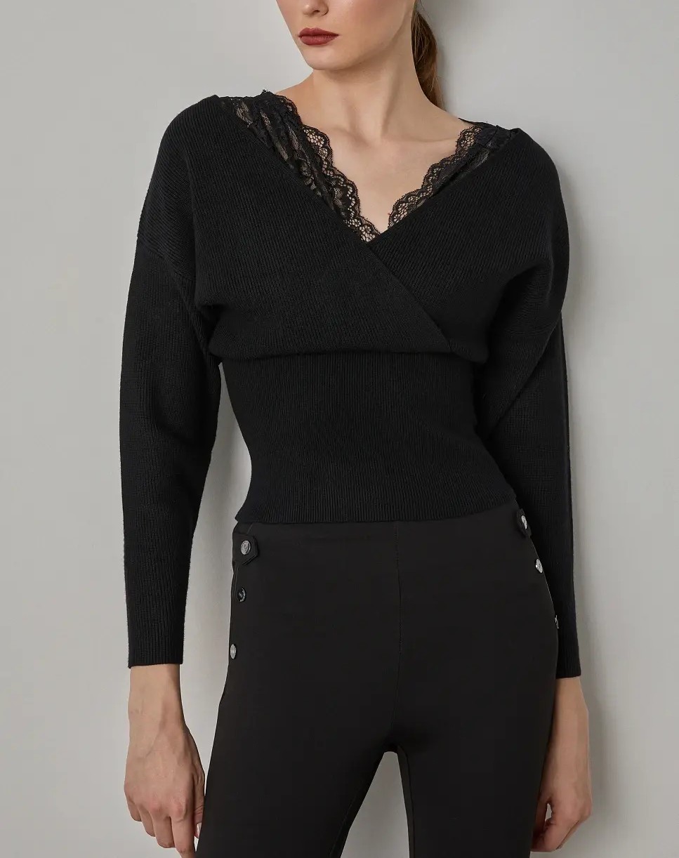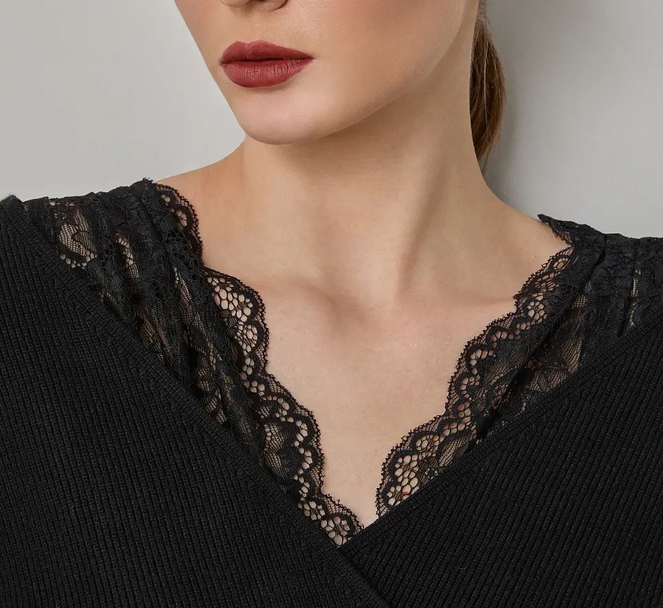 BSB Κρουαζέ Πουλόβερ με Δαντέλα Μαύρο