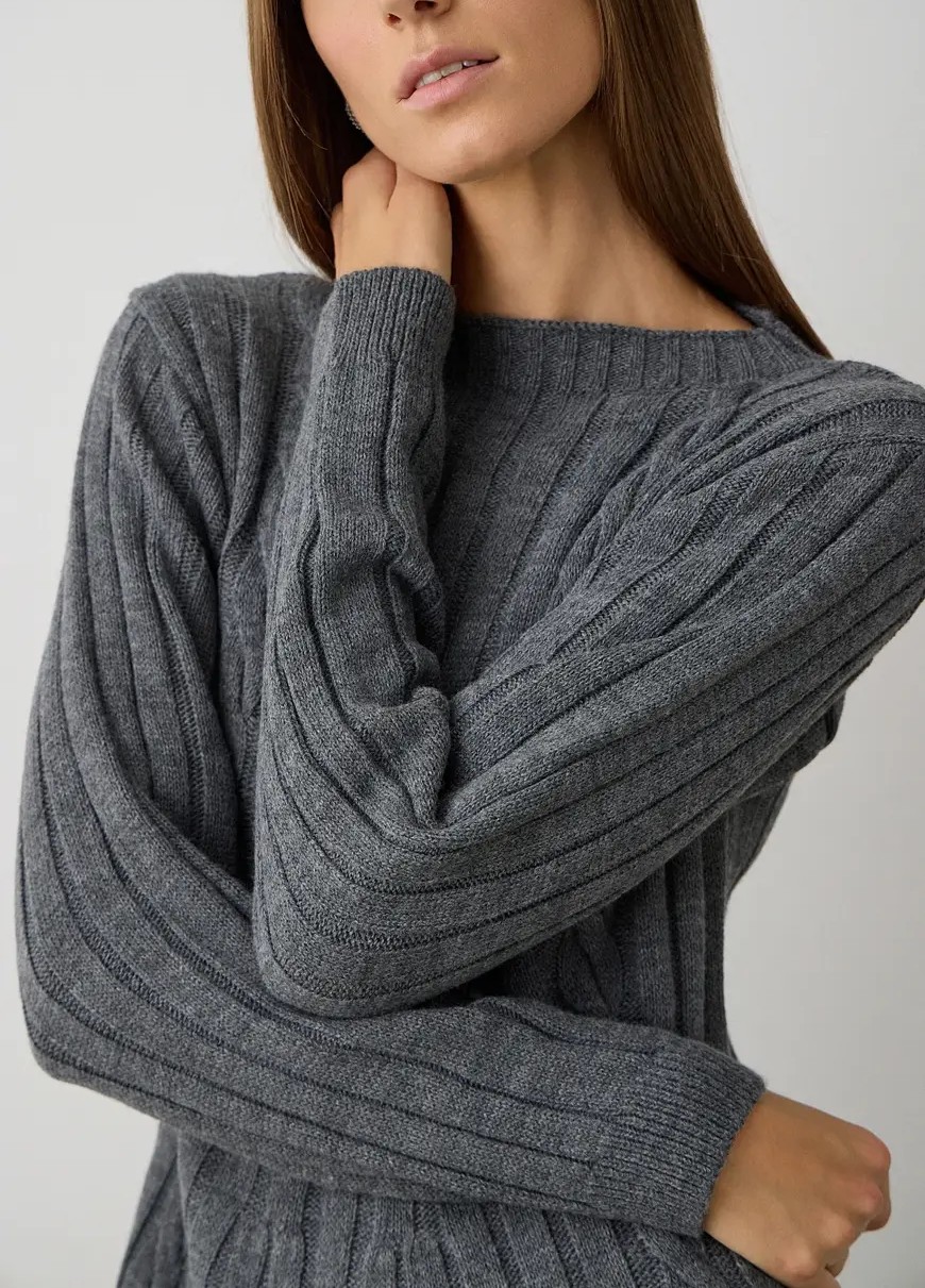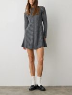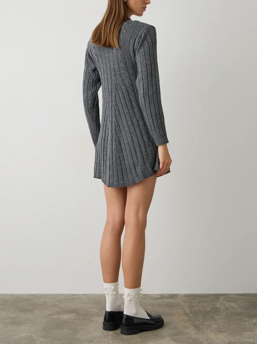 BSB Μίνι Πλεκτό Φόρεμα Γκρι Μελανζέ