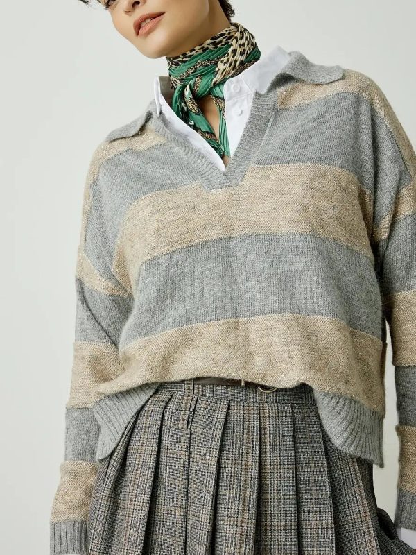 BSB Ριγέ Πουλόβερ με Γιακά