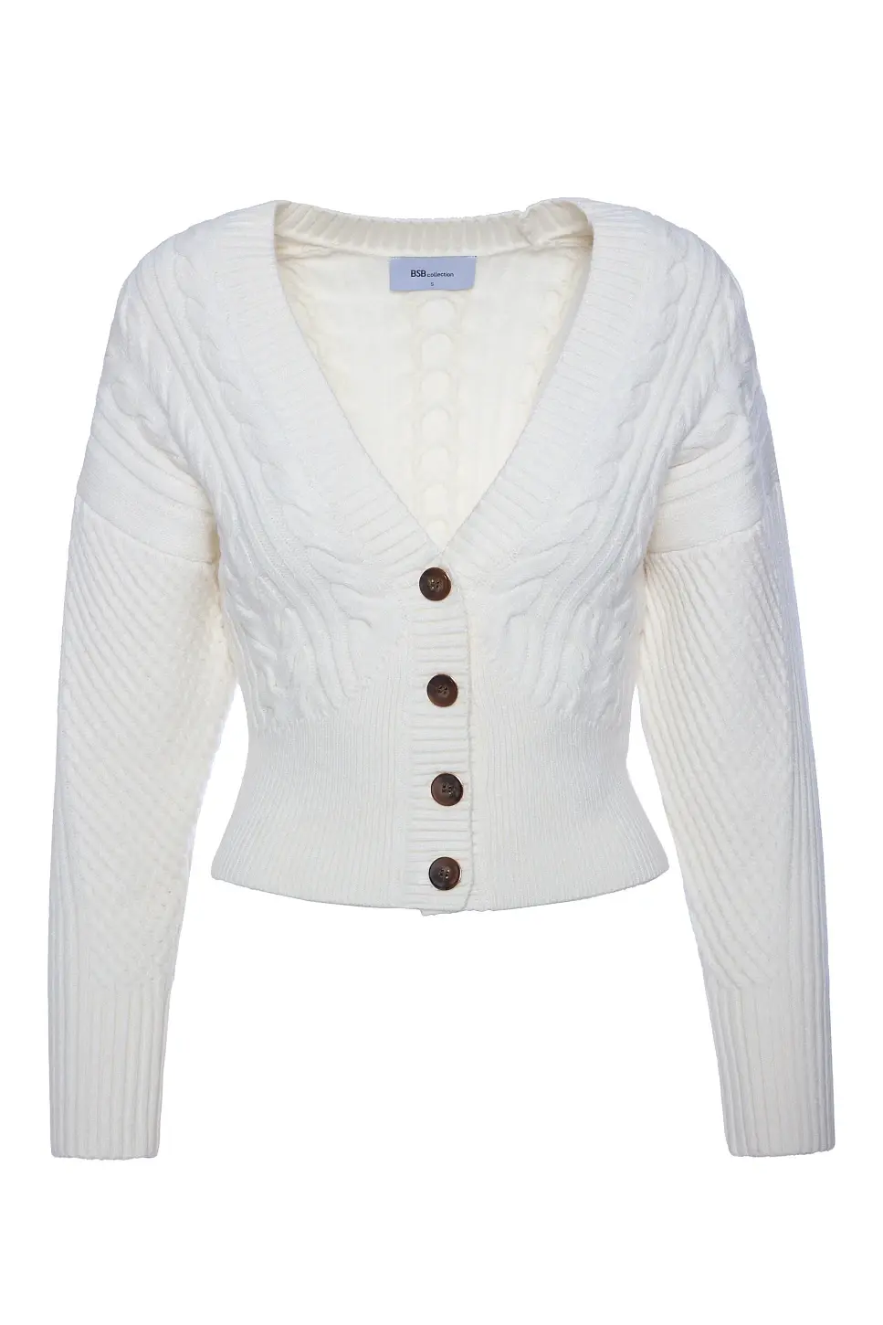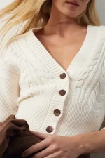 BSB Πλεκτή V Zακέτα με Κουμπιά Off White
