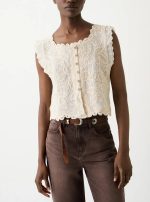 BSB Αμάνικη Μπλούζα με Κέντημα και Κουμπιά