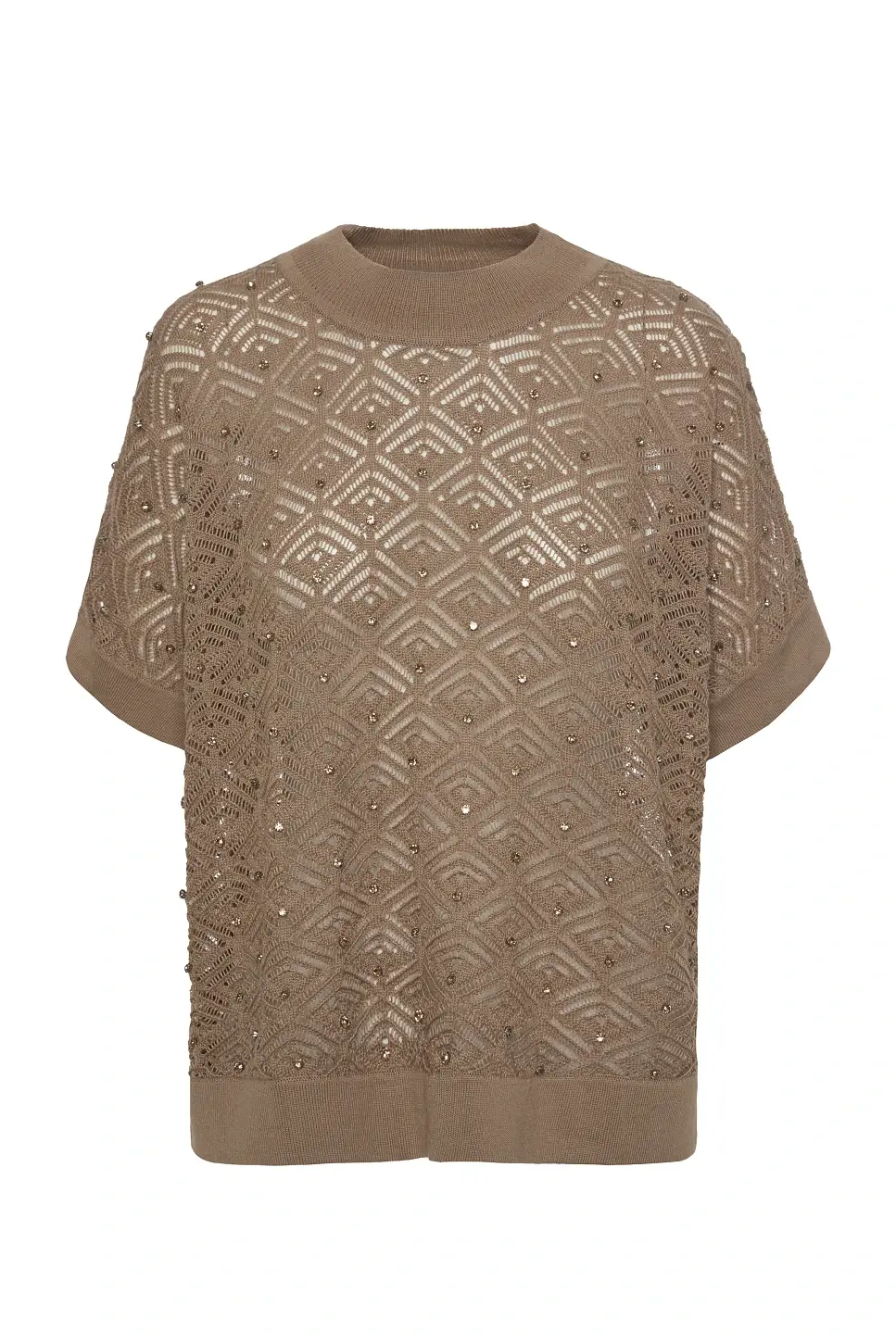 BSB Κοντομάνικο Διάτρητο Πουλόβερ με Στρας