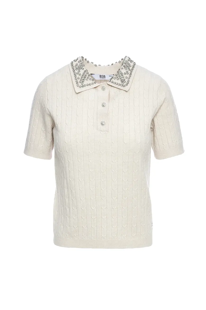 BSB Κοντομάνικο Πουλόβερ με Στρας Off White