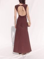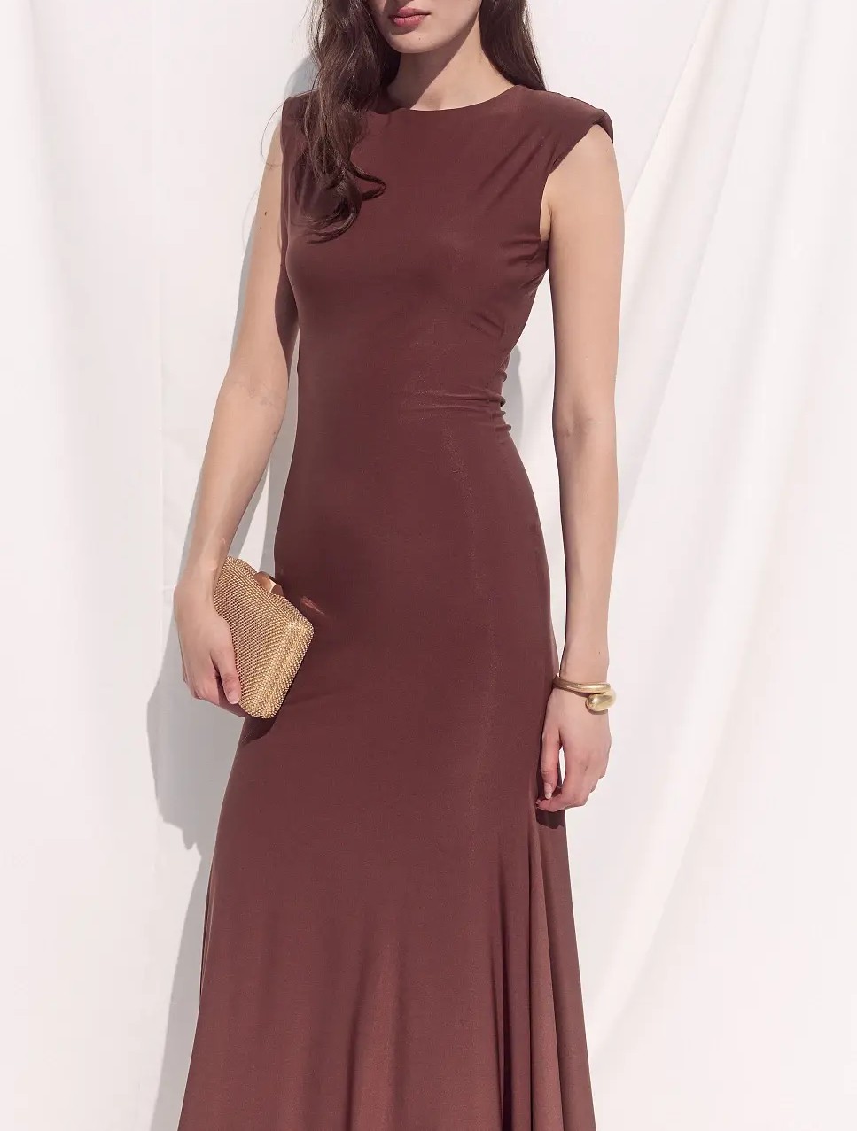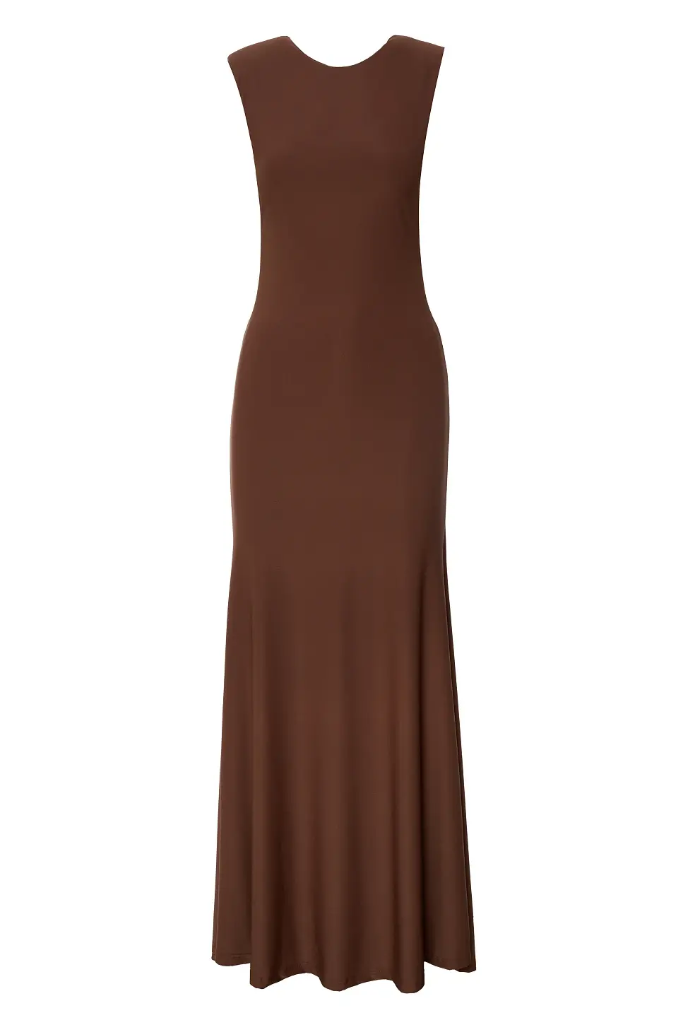 BSB Μάξι Εξώπλατο Φόρεμα Σοκολάτα – Gold Label