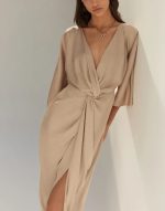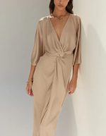 BSB Μάξι Κρουαζέ Σατέν Φόρεμα Μπεζ – Gold Label