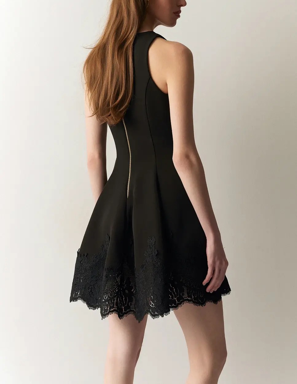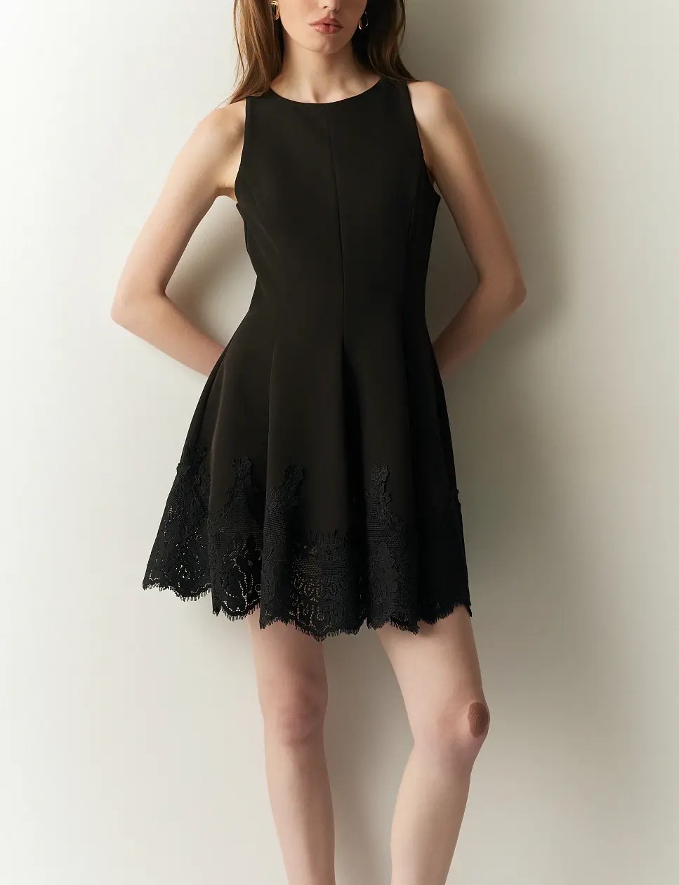 BSB Μίνι Aμάνικο Φόρεμα με Δαντέλα Μαύρο
