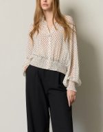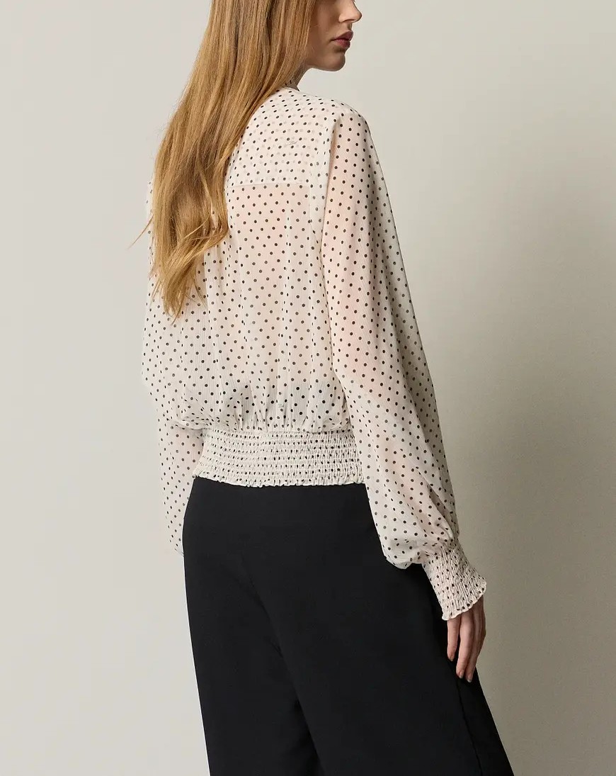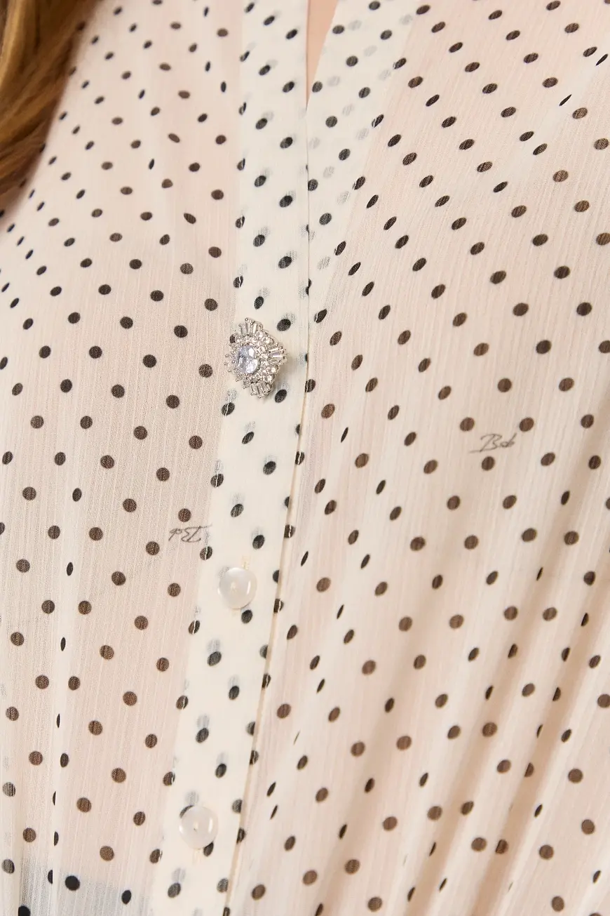 BSB Μακρυμάνικη Πουά Μπλούζα με Σφηκοφωλιά Βανίλια