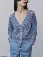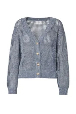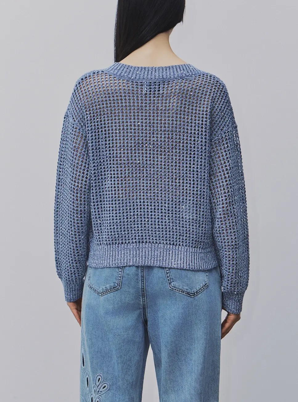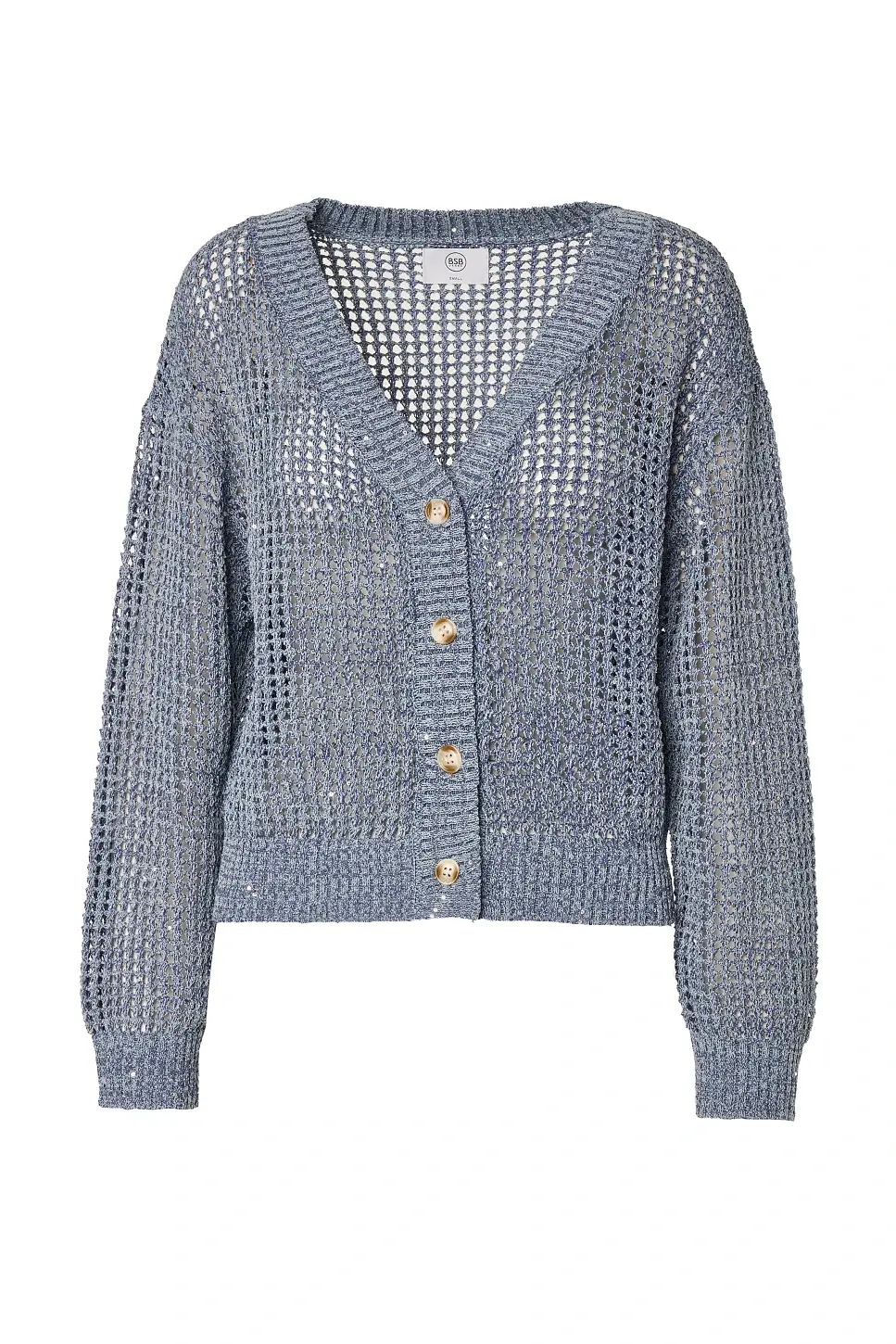 BSB Πλεκτή Ζακέτα V με Παγιέτες Ουρανί