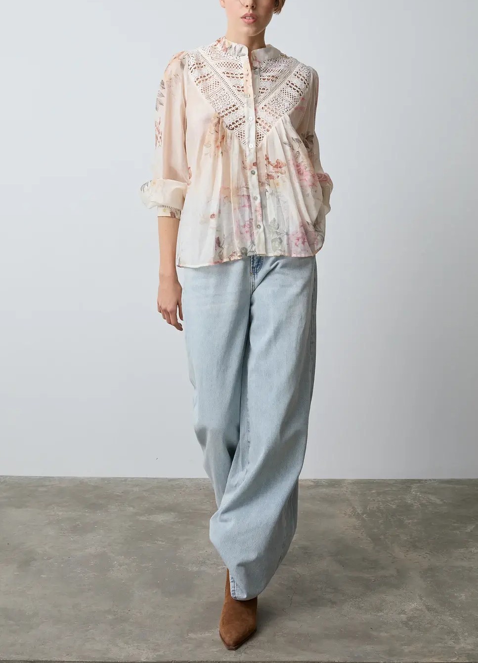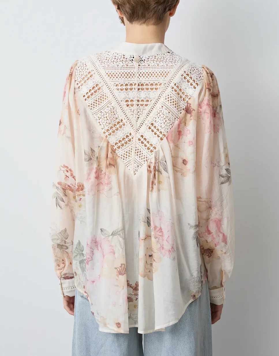 - Φλοράλ πουκάμισο με διάτρητες λεπτομέρειες