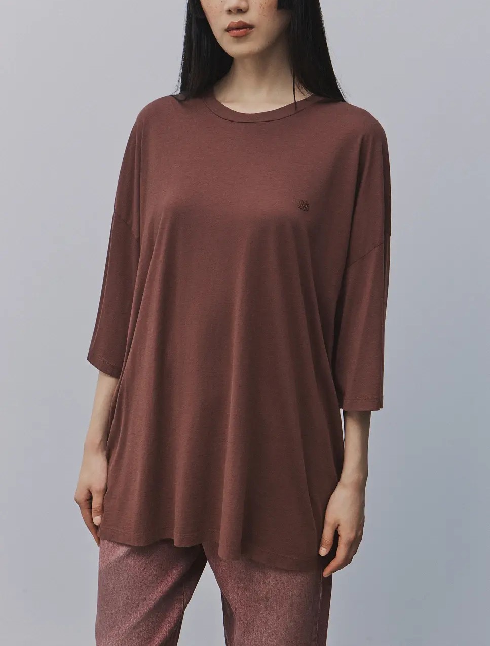 BSB Oversized Βαμβακερή Μπλούζα Σοκολάτα