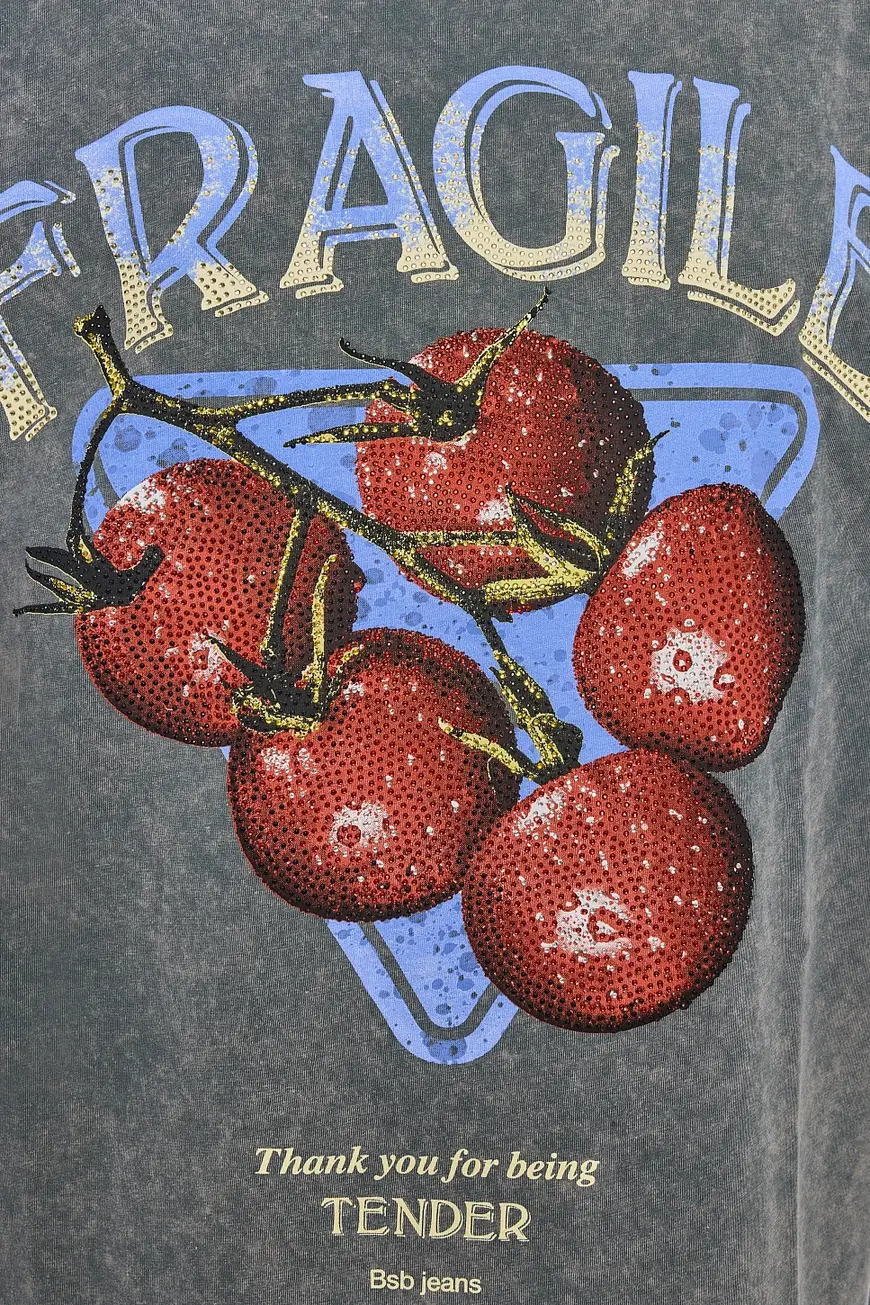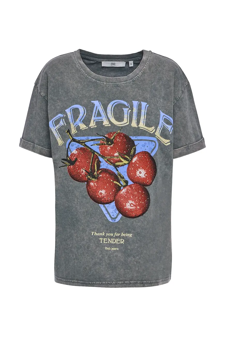 BSB Oversized T-shirt με Τύπωμα Άνθρακί